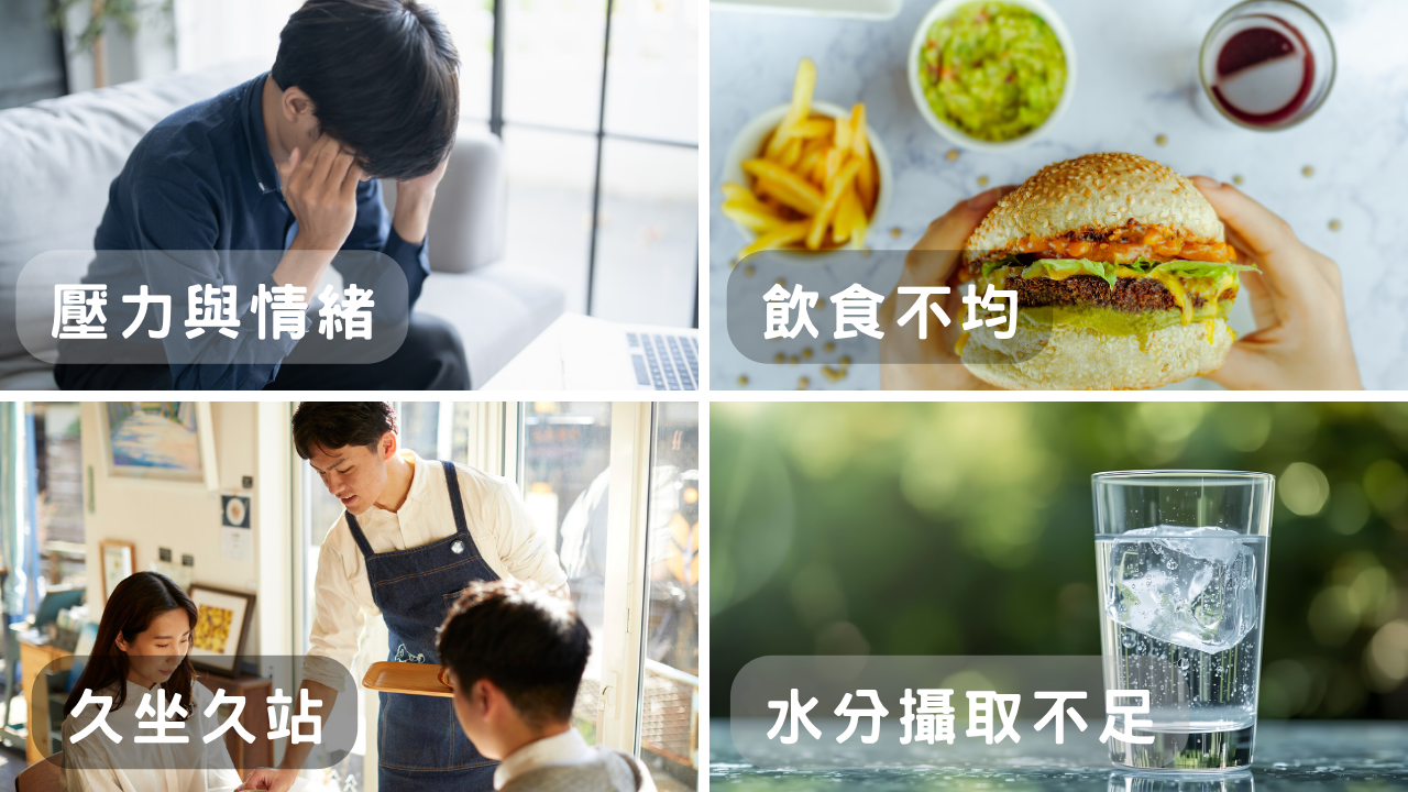 缺乏運動,久坐久站,會影響消化系統的運作速度。