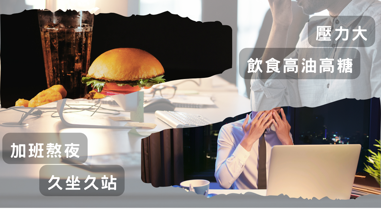你是否高油高糖精緻飲食、常覺得睡不好、加班熬夜太累、壓力大、久坐久站?