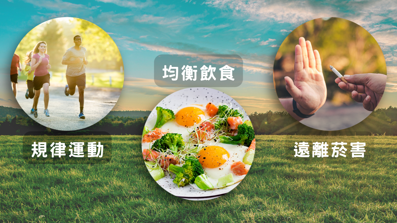 ✔ 均衡飲食:適量攝取蔬果、深綠色蔬菜、全榖雜糧,天然未加工食物。